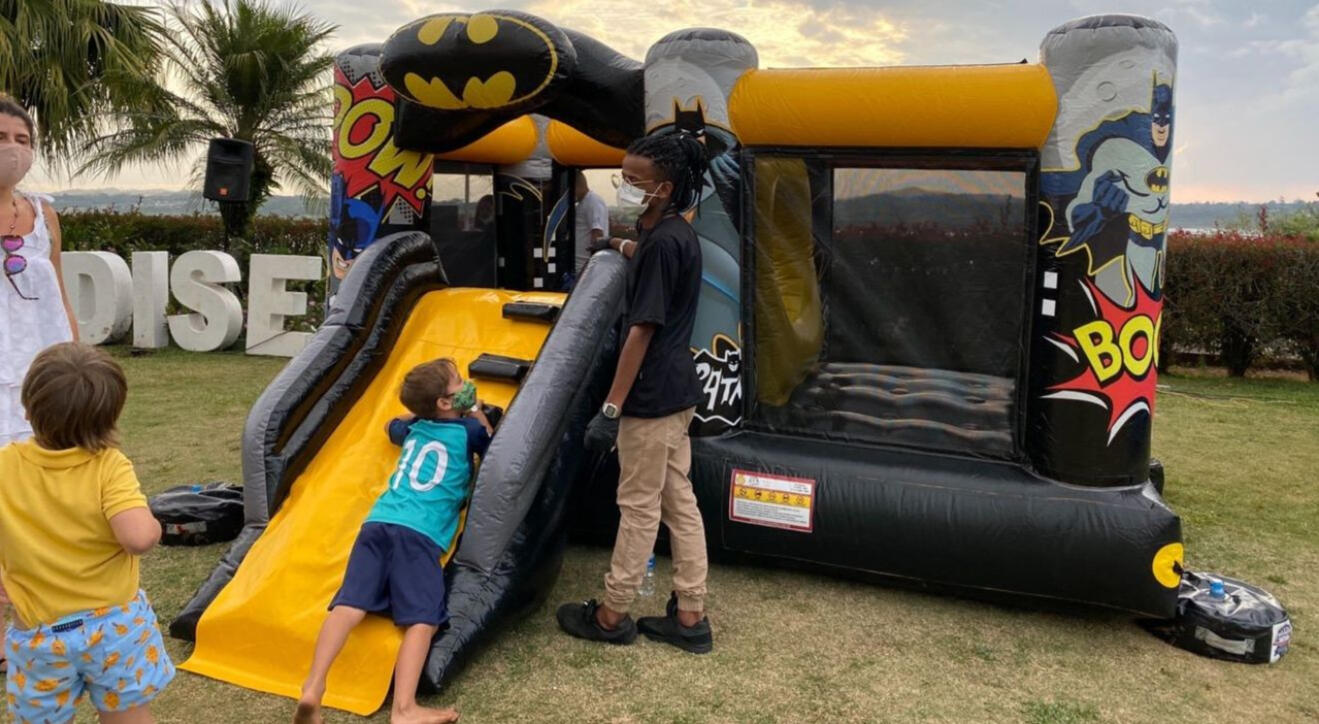 É só escolher o brinquedo desejado, informar a data e o local. Fazemos a reserva e cuidamos de toda a entrega e montagem.
